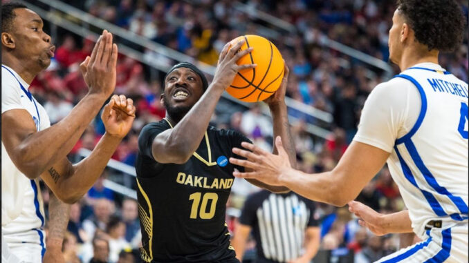 The contest was a thrill ride between the two vastly different programs, and the atmosphere was crackling with electricity. A staple of college basketball, Kentucky had a large contingent all around the arena, but a lone section of Oakland fans matched their intensity. It was loud, it was tense — it was March at its finest.