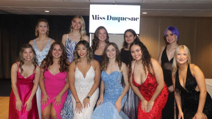 In its 20th year of fundraising, Miss Duquesne was organized by Alpha Sigma Tau sisters, junior Emma Tobia and sophomore Abby Tills. The two expressed gratitude for Saturday evening’s event, which they started planning in June.