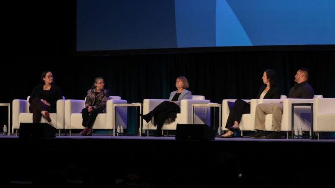 Delaney Kraus | staff photographer | Amy Mallinger (left tp right), Audrey Glickman, Jodi Kart, Michele Rosenthal and Johnathan Craig globally discuss their difficult experiences from the Tree of Life Synagogue shooting at the Eradicate Hate Global Summit after 4 1/2 years of needing to remain silent.