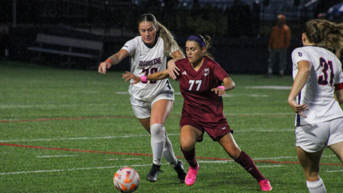 The Duquesne women’s soccer team earned a hard-fought 1-1 draw after falling behind early against UMass on Sept. 28.